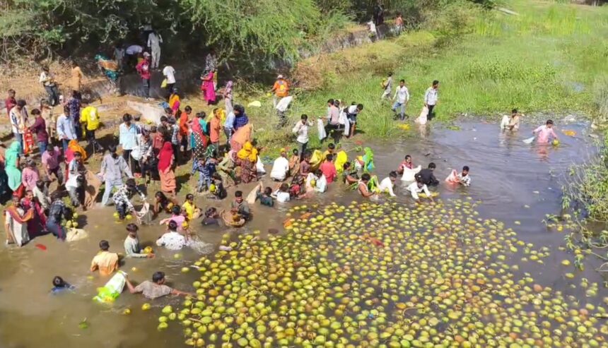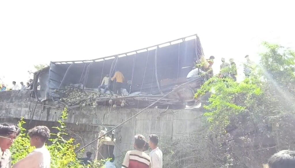 ગરબાડાના ‘મોતના પૂલ’ પર નારિયળની રેલમછેલ: ટ્રક પલટી ખાતા જ લોકોમાં મચી લૂંટફાટ!