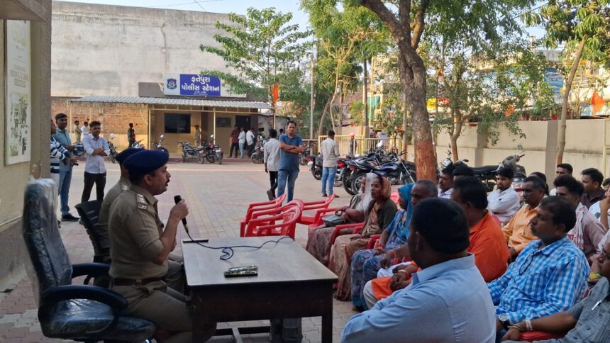 *પી.આઈ. પી.એ. જાડેજા અને પી.એસ.આઇ જે. કે. રાઠોડની હાજરીમાં તાલુકા-જિલ્લા પંચાયતના ઉમેદવારો સાથે આચારસંહિતા અંગે ચર્ચા કરવામાં આવી*