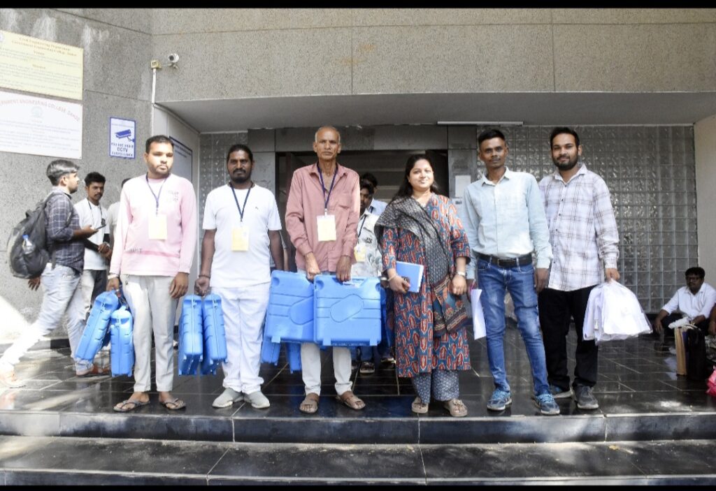 નવજીવન આર્ટસ એન્ડ કોમર્સ કોલેજ અને સરકારી એન્જિનિયરિંગ કોલેજ ખાતે સ્થિત રિસિવિંગ સેન્ટર પરથી પ્રાંત અધિકારી શ્રી મિલિન્દ દવે અને નાયબ જિલ્લા વિકાસ અધિકારી શ્રી પ્રશાંત પરમારના માર્ગદર્શન હેઠળ ઇવીએમ મશીન તેમજ અન્ય ચૂંટણીલક્ષી સામગ્રીનું વિતરણ કરવામાં આવી રહ્યું છે.