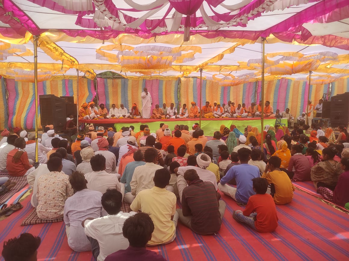 આજરોજ તા.૨૭/૦૫/૨૦૨૨ દાહોદના વિજાગઢ ખાતે અલખધણી રામદેવજી મહારાજ ના મંદિરે મૂર્તિ પ્રાણ પ્રતિષ્ઠા ના શુભ અવસરે વિશાળ સંખ્યામાં ધર્મ સંમેલન યોજાયું આ સંમેલનમાં અખિલ ભારતીય સંત સમિતિ પંચમહાલના ઘોઘંબાથી પૂજ્ય વિક્રમદાસ જી મહારાજ ઉપસ્થિત રહ્યા હતા જેમણે ધર્મરક્ષા હિંદુ પરિવારની રક્ષા હિન્દુ નારી પોતાના માથે સિંદુર હાથમાં બંગડી અને હિન્દુ ચિન્હોનો ઉપયોગ કરતા શરમ ના અનુભવે કારણ મહારાણા પ્રતાપ અને શિવાજી જેવા દીકરાઓ પેદા કરવા પડશે કહી મોટી સંખ્યામાં ઉપસ્થિત દેવી શક્તિ ને અભિનંદન આપ્યા હતા.પૂજ્ય દયાનંદજી મહારાજ ઘોડાખાળ કંબોઈ અને અખિલ ભારતીય સંત સમિતિ દાહોદના માર્ગદર્શક જેમણે હિંદુ ધર્મ માટે સૌ સાધુ-સંતોએ એક મંચ પર ભેગા મળીને સમાજની દરેક સમસ્યા ના ઉકેલ માટે સક્રિય થવું પડશે એટલું જ નહીં ધર્મ અને રાષ્ટ્ર માટે પણ સંતોએ પોતાનું યોગદાન આપવું પડશે એમ કહી આજના કાર્યક્રમના આયોજકોને ખૂબ ખૂબ અભિનંદન આપ્યા હતા આ કાર્યક્રમમાં પુ.શ્રી.ગંગારામજી મહારાજ પણ વિશેષ ઉપસ્થિત રહ્યા હતા ગાંગરડી થી કિરણદાસજી મહારાજ ઉપસ્થિત રહ્યા હતા પૂજ્ય બાપુ દલસુખદાસજી મહારાજે સૌ ભક્તો સાધુ સંતોને આહવાન કરતા રામદેવજી મહારાજ અને એમની ભક્તિનો મહિના દર્શાવ્યો હતો સાથે જ રણુજાધામ સંજેલી અને એમની સાથે જોડાયેલા મંદિરો અને અલખ ધણી રામદેવના ભક્તો ને હિન્દુ સમાજની સેવા માટે આગળ આવવા માટે આહ્વાન કર્યું હતું આજના કાર્યક્રમમાં અખિલ ભારતીય સંત સમિતિ દાહોદ ના અધ્યક્ષ વિમલદાસજી મહારાજ પણ ઉપસ્થિત રહ્યા હતા *આજના કાર્યક્રમ મા સામાજિક તેમજ રાજકીય આગેવાનો શ્રી ધમુભાઈ પંચાલ,શ્રી અજીતદેવ પારગી, શ્રી લલિતભાઈ ચેરમેન બાંધકામ સમિતી, શ્રી પર્વતભાઈ ડામોર જીલ્લા સભ્ય, શ્રી હિંમતભાઈ તડવીજી,શ્રીબાલુભાઈ તા.સભ્ય અને વિજાગડના સરપંચ શ્રી જાલુભાઈ પસાયા પણ ખાસ ઉપસ્થિત રહ્યા હતા.