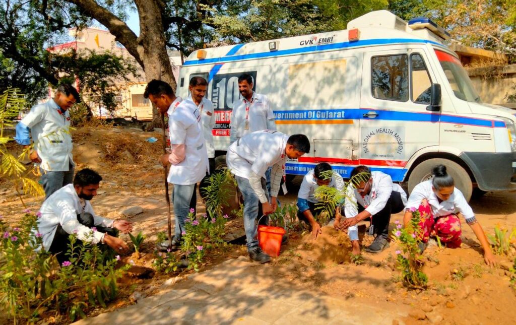જીવીકે ઇ.એમ.આર.આઈ ૧૦૮ ઈમરજન્સી સેવા ના કર્મચારીઓ 24 કલાક ઇમરજન્સી કેસ માટે ખડેપગે હોય છે અને લોકોનો જીવ બચાવવા માટે કટિબદ્ધ બન્યા છે, મહામારી સામે લોકોના જીવ બચાવવાની સાથે સાથે આજરોજ તારીખ 5 જૂન 2022 નાં રોજ દાહોદ જિલ્લા ના ડોકટર સ્ટાફ અને જીવીકે ઇ.એમ.આર.આઈ ૧૦૮