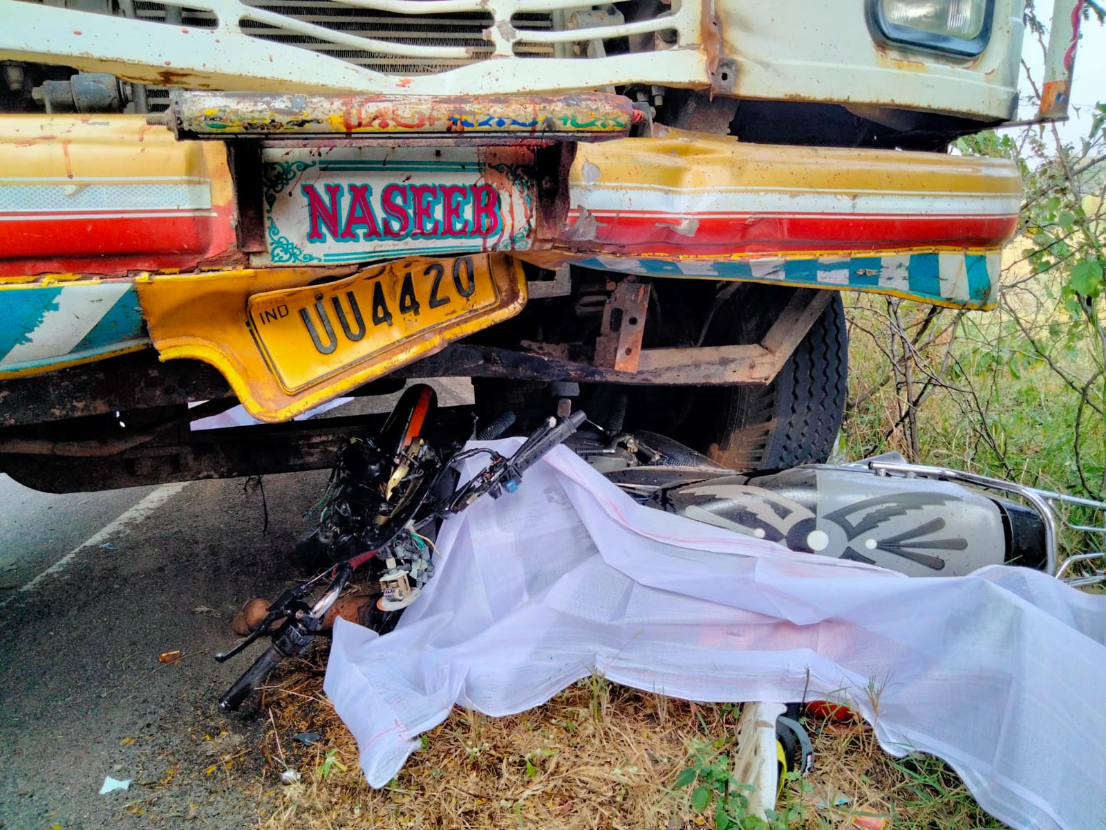 ભુવાલ ગામેથી એક લાકડા ભરેલી ટ્રક પસાર થઇ રહી હતી અને તે જ સમયે ત્યાંથી એક મોટરસાયકલ પર સવાર બે યુવકો પણ પસાર થઈ રહ્યા હતા આ દરમિયાન ટ્રક અને મોટરસાયકલ બંને સામસામે આવી જતા મોટરસાયકલ પર સવાર બંને યુવકો ટ્રક સાથે ધડાકાભેર અથડાતા મોટરસાયકલ પર સવાર બંને યુવકોને શરીર તેમજ માથાના ભાગે ગંભીર જીવલેણ ઈજાઓ પહોંચતા ઘટનાસ્થળ પર જ બન્ને યુવકોના પ્રાણ પંખેરૂ ઉડી ગયા હતા. ઘટનાની જાણ મૃતક યુવકોના પરિવારજનો તેમજ સ્વજનોની થતાં તેઓ તાબડતોડ ઘટનાસ્થળે દોડી ગયા હતા અને ઘટના સ્થળ પર જ કરુણાંતિકા છવાઈ ગઈ હતી ઘટનાને પગલે સ્થળ પર લોકટોળા પણ ઉમટી પડ્યા હતા અને આ અંગેની જાણ સ્થાનિક પોલીસને પણ કરવામાં આવતા પોલીસ પણ સ્થળ પર આવી પહોંચી હતી.