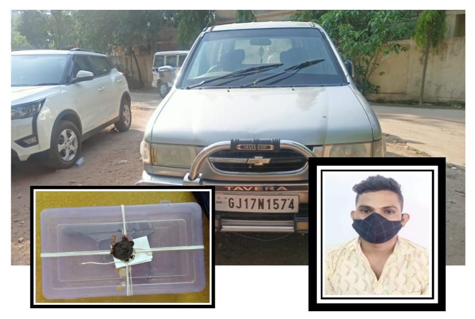 પોલીસ વિભાગ તરફથી પ્રાપ્ત થયેલ માહિતી અનુસાર, ગતરોજ રાત્રિના સમયે ધાનપુર પીએસઆઇ તેમના પોલીસ સ્ટાફના માણસો સાથે પેટ્રોલીંગમાં હતા અને ફરતા ફરતા વાંસીયાડુંગરી ગામે આવતા ત્યાં તેમણે ખાનગી રાહે બાતમી મળી હતી કે, એક સિલ્વર કલરની ટાવેરા ગાડી નં.GJ.17.N.1574 માં એક ઈસમે દેશી હાથ બનાવટની પિસ્તોલ સંતાડી રાખેલ છે અને તે વરઝર ગામેથી વાંસીયાડુંગરી તરફ આવી રહેલ છે તે બાતમીના આધારે ધાનપુર પીએસઆઇ તેમના પોલીસ સ્ટાફના માણસો સાથે મંડોર ગામે ચોકડી ઉપર આવી બાતમીવાળી ગાડીની વોચમાં ઊભા રહી વાહન ચેકિંગમાં હતા તે દરમ્યાન વરઝર વાંસીયાડુંગરી રોડ તરફથી બાતમીવાળી ટાવેરા ગાડી આવતા પોલીસે તેને ઊભી રાખવા ઈશારો કરતાં ગાડીના ચાલકે ગાડી ઊભી રાખી નીચે ઉતારી ભાગવા જતાં પોલીસે તેને ઝડપી પાડેલ અને તેનું નામઠામ પૂછતાં તેને તેનું નામ સરદારભાઈ હરમલભાઈ પરમાર, રહે.બડાખુટાજા, પંચાયત ફળિયું, તા.ભાભરા, જી.અલીરાજપુર, મધ્યપ્રદેશ હોવાનું જણાવતા પોલીસે તેને સાથે રાખી પંચો રૂબરૂ GJ.17.N.1574 નંબરની ટાવેરા ગાડીમાં ઝડતી તપાસ કરતાં પોલીસને ટાવેરા ગાડીની ડ્રાઈવર સીટના નીચે સંતાડીને મૂકી રાખેલ દેશી હાથ બનાવટની પિસ્તોલ મળી આવી હતી. જે પિસ્તોલ બહાર કાઢીને સાવચેતીપૂર્વક જોતાં પિસ્તોલના મેગેઝીનમાં ત્રણ રાઉન્ડ કારતૂસ પણ લોડ કરેલા મળી આવ્યા હતા. જેથી ધાનપુર પોલીસે રૂ.20000/- ની કિંમતની દેશી હાથ બનાવટની પિસ્તોલ તથા રૂ.300/- ની કિંમતમાં ત્રણ નંગ કારતૂસ તથા રૂ.250000/- ની કિંમતની ટાવેરા ગાડી મળી કુલ રૂ.270300/- નો મુદ્દામાલ કબ્જે કરી મધ્યપ્રદેશના અલીરાજપુર જિલ્લાના બડાખુટાજા ગામના 30 વર્ષીય સરદારભાઈ હરમલભાઈ પરમારની અટક કરી તેના વિરુદ્ધ ગુનો નોંધી વધુ તપાસ હાથ ધરી છે.