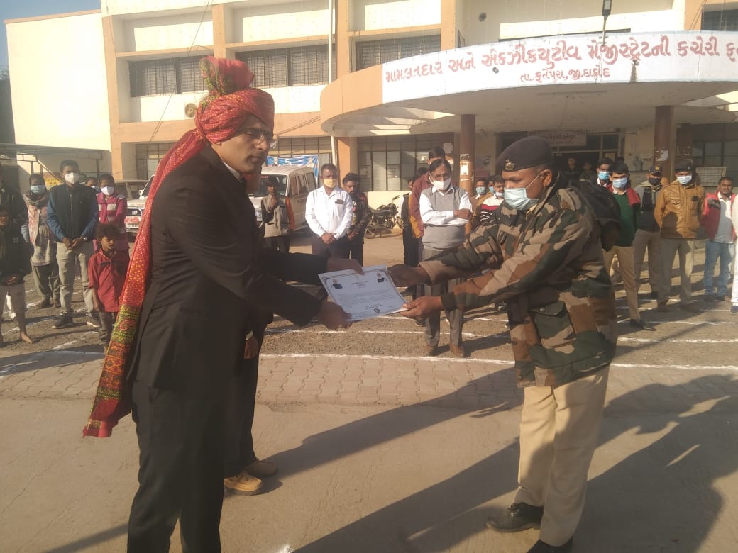 ફતેપુરા તાલુકાના મુખ્ય મથક ફતેપુરા નગર સહિત ફતેપુરા તાલુકામાં 73 માં પ્રજાસત્તાક પર્વની આન બાન અને શાનથી ઉજવણી કરવામાં આવી હતી નગરમા આવેલ મામલતદાર કચેરીના પટાંગણમાં ફતેપુરાના પ્રાંત અધિકારી શ્રી કુલદીપ દેસાઈના વરદ હસ્તે ધ્વજ વંદન કરવામાં આવ્યું હતું તેમજ કોરોના સમયગાળા દરમિયાન વિશેષ કામગીરી કરનાર પી.એસ.આઇ સી.બી. બરંડા આરોગ્ય કર્મચારી વન ખાતાના કર્મચારી તેમજ પોલીસ સ્ટાફને પ્રમાણપત્ર આપવામાં આવેલ હતા આ પ્રસંગે મામલતદાર પી એન પરમાર તેમજ સ્ટાફ શહેરીજનો હાજર રહ્યા હતા કોર્ટના પટાંગણમાં જજ શ્રી એ એ દવે ના વરદ હસ્તે ધ્વજને સલામી આપવામાં આવેલ હતી આ પ્રસંગે એડવોકેટ પ્યારેલાલ કલાલ સી.એસ. પારગી શરદભાઈ ઉપાધ્યાય શબ્બીર ભાઈ સુનેલવાલા સહિતના વકીલો તેમજ સ્ટાફ હાજર રહ્યો હતો તાલુકા પંચાયતના પટાંગણમાં તાલુકા પંચાયતના પ્રમુખશ્રી તાલુકા કુમાર શાળા માં ભૂમિકા બેન પ્રજાપતિ પોલીસ સ્ટેશનમાં અંબાલાલ પંચાલ ગ્રામ પંચાયતમાં પંકજભાઈ પંચાલ શ્રી આઈ કે દેસાઈ સ્કૂલ માં મંડળના ઉપપ્રમુખ શરદભાઈ ઉપાધ્યાય તેમજ જાગૃતિ કન્યા વિદ્યાલયના પટાંગણમાં તાલુકા પંચાયતના પૂર્વ ઉપપ્રમુખ રજાકભાઈ પટેલ ના વરદ હસ્તે ધ્વજને સલામી આપવામાં આવેલ હતી આ પ્રસંગે શાળાના આચાર્યો શિક્ષકો શિક્ષિકાઓ સ્ટાફ ગણ શાળાના વિદ્યાર્થીની ઓ વિદ્યાર્થીઓ તેમજ ખૂબ જ મોટી સંખ્યામાં ગ્રામજનો હાજર રહ્યા હતા આમ ફતેપુરા નગરમાં ૭૩ માં પ્રજાસત્તાક પર્વની આન બાન અને શાનથીહર્ષોલ્લાસભર્યા વાતાવરણમાં ઉજવણી કરવામાં આવી હતી.