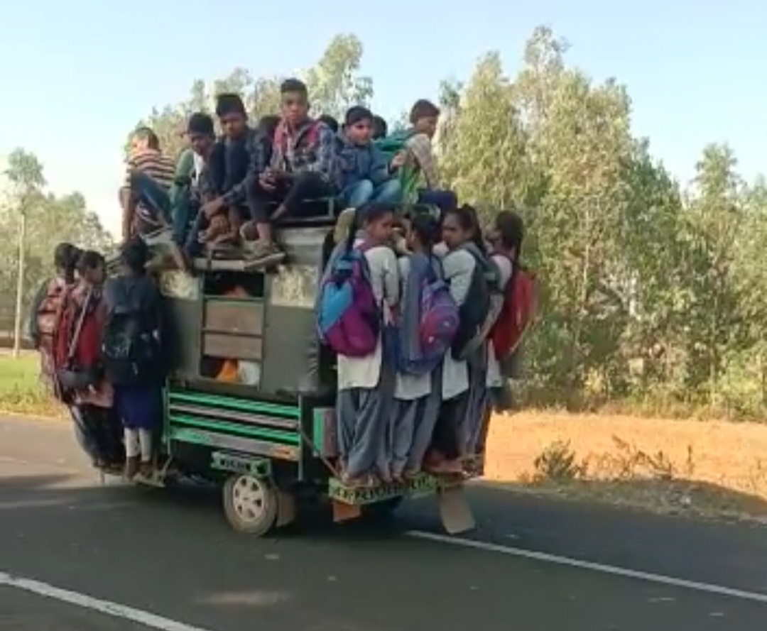 ખાનગી વાહનોમાં ઘેટા બકરાની જેમ બેસીને અભ્યાસ માટે અપડાઉન કરતા વિદ્યાર્થીઓ
