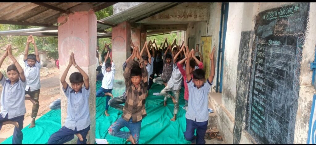 દ્વારા ભારતીય સંસ્કૃતિનુ મહત્વ સાથે યોગનું મહત્વ, યોગ થી થતા ફાયદા તથા જુદા-જુદા આસનોના ફાયદાની સમજ આપવામાં આવી હતી. સાથે સમગ્ર ગામમાં 21 મી જુન સંદર્ભે પ્રભાત કેરી અને રેલીનું આયોજન કરવામાં આવ્યું હતું.બાળકો યોગ ને જાણતા થાય, માણતા થાય અને સમજતા થાય તે માટે વિશ્વ યોગ દિવસ વિશે નિબંધ, લેખન સ્પર્ધા,વક્તૃત્વ સ્પર્ધા,અને ચિત્ર સ્પર્ધા નું આયોજન કરવામાં આવ્યું હતુ.તથા બાળકો દ્વારા જુદા-જુદા આસનો રજૂ કર્યા હતા.અને 35 બાળકો દ્વારા સૂર્ય નમસ્કાર સામૂહિક રીતે કરવામાં આવ્યા હતા.આ રીતે સમગ્ર ગામ અને શાળામાં વિશ્વ યોગ દિવસ ઉજવણીનુ વાતાવરણ નિર્માણ કરવામાં આવ્યું હતું.