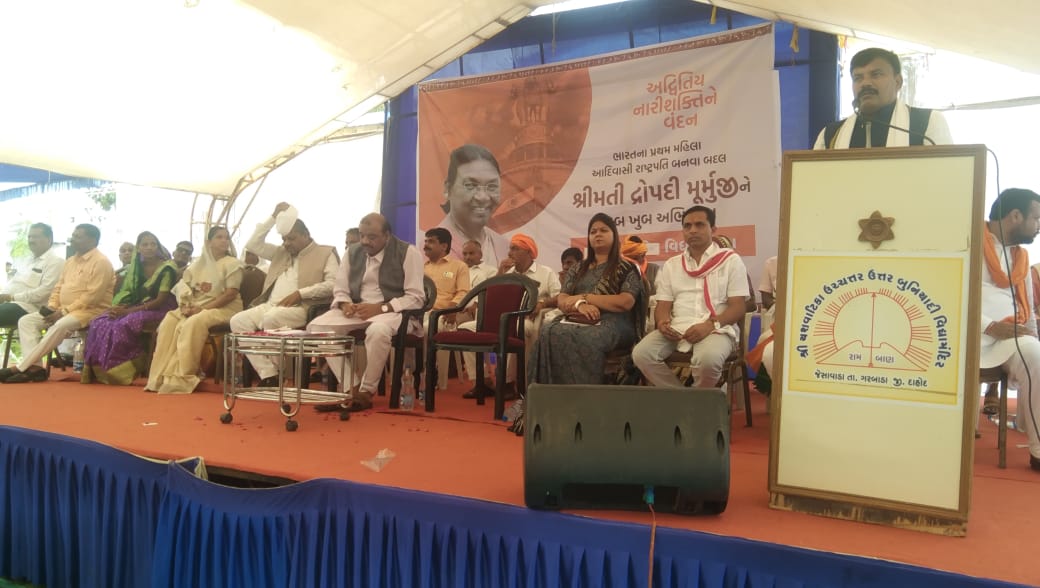 ગરબાડા ભારતના રાષ્ટ્રપતિ દ્રૌપદી મુર્મુની ભવ્ય જીત બદલ સાંસદની અધ્યક્ષતામાં અભિવાદન કાર્યક્રમ યોજાયો..