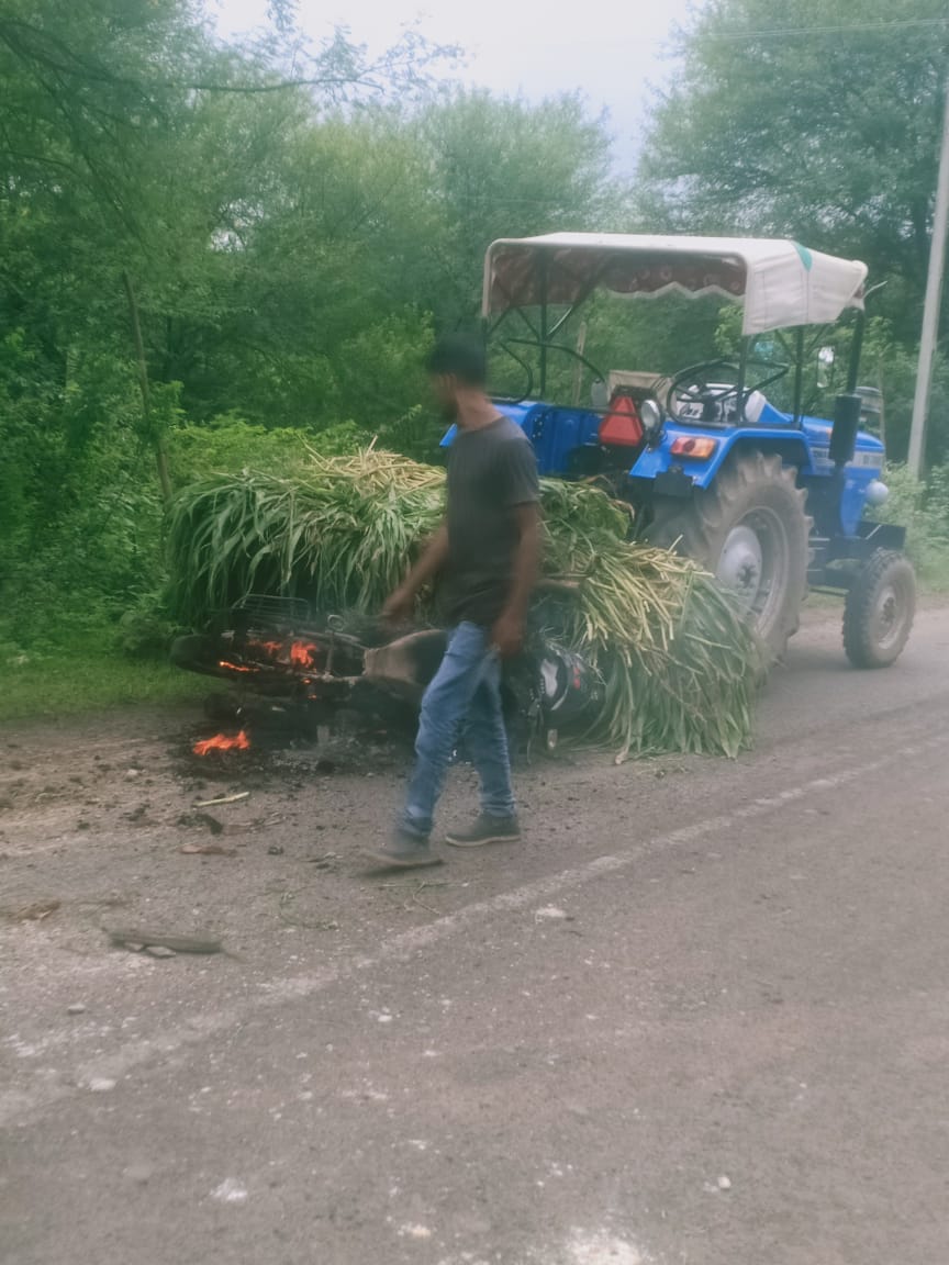 ગરબાડા તાલુકાના અભલોડ ગામે ઉભેલા ટ્રેક્ટર માં પાછળથી બાઈક ભટકાતા લાગી આગ