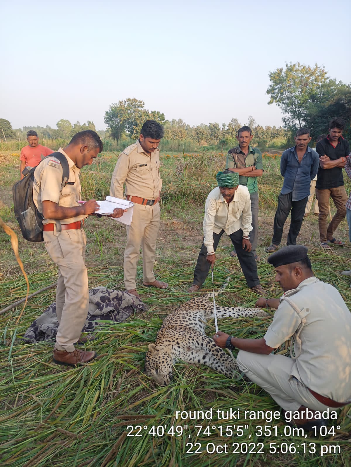 પ્રાપ્ત માહિતી અનુસાર આજે તારીખ 22 ઓક્ટોબર ના રોજ ગરબાડા તાલુકાના દાદુર ગામ ખાતે નરવતભાઈ કાળુભાઈ બારીયાના ખેતરમાં દિપડો જોવા મળતા ખેતરના માલિક દ્વારા ગરબાડા વન વિભાગ તેમજ RFO ને જાણ કરવામાં આવી હતી.માહિતી મળતાની સાથે જ વન વિભાગની ટીમ અને RFO ઘણા સ્થળે જઈ અને તપાસ હાથ ધરી હતી તપાસ કરતા ખેતરમાં પડેલો દિપડો મૃત હાલતમાં જોવા મળ્યો હતો જે દીપડાના શવને વન વિભાગ દ્વારા પંચકેશ કરી અને દીપડાના શવ પોસ્ટમાર્ટમ અર્થે મોકલી આપવામાં આવ્યો હતો.જેમાં વેટનરી ડોક્ટર દ્વારા જણાવવામાં આવ્યું હતું.કે દિપડો વૃદ્ધ અવસ્થામાં હોવાના કારણે ખોરાક ન મળતા તેનું મૃત્યુ થયું હશેતેવું મૌખિક રીતે જણાવ્યું હતું.હાલ દીપડાના શવ વન વિભાગ દ્વારા અગ્નિસંસ્કાર કરવામાં આવ્યા હતા.