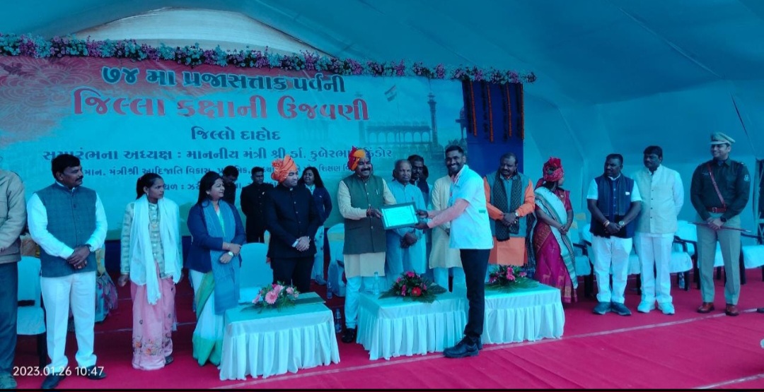 દાહોદ જિલ્લાના ગરબાડા ખાતે આયોજીત જિલ્લા કક્ષાના ૭૪માં પ્રજાસત્તાક દિન નિમિત્તે દાહોદના ઈ.એમ.ટી.ના પાયલોટ સહિત ચાર વ્યક્તિઓને શ્રેષ્ઠ કામગીરીને પગલે પ્રસસ્તી પત્ર તેમજ સન્માતિ કરવામાં આવ્યાં હતાં.