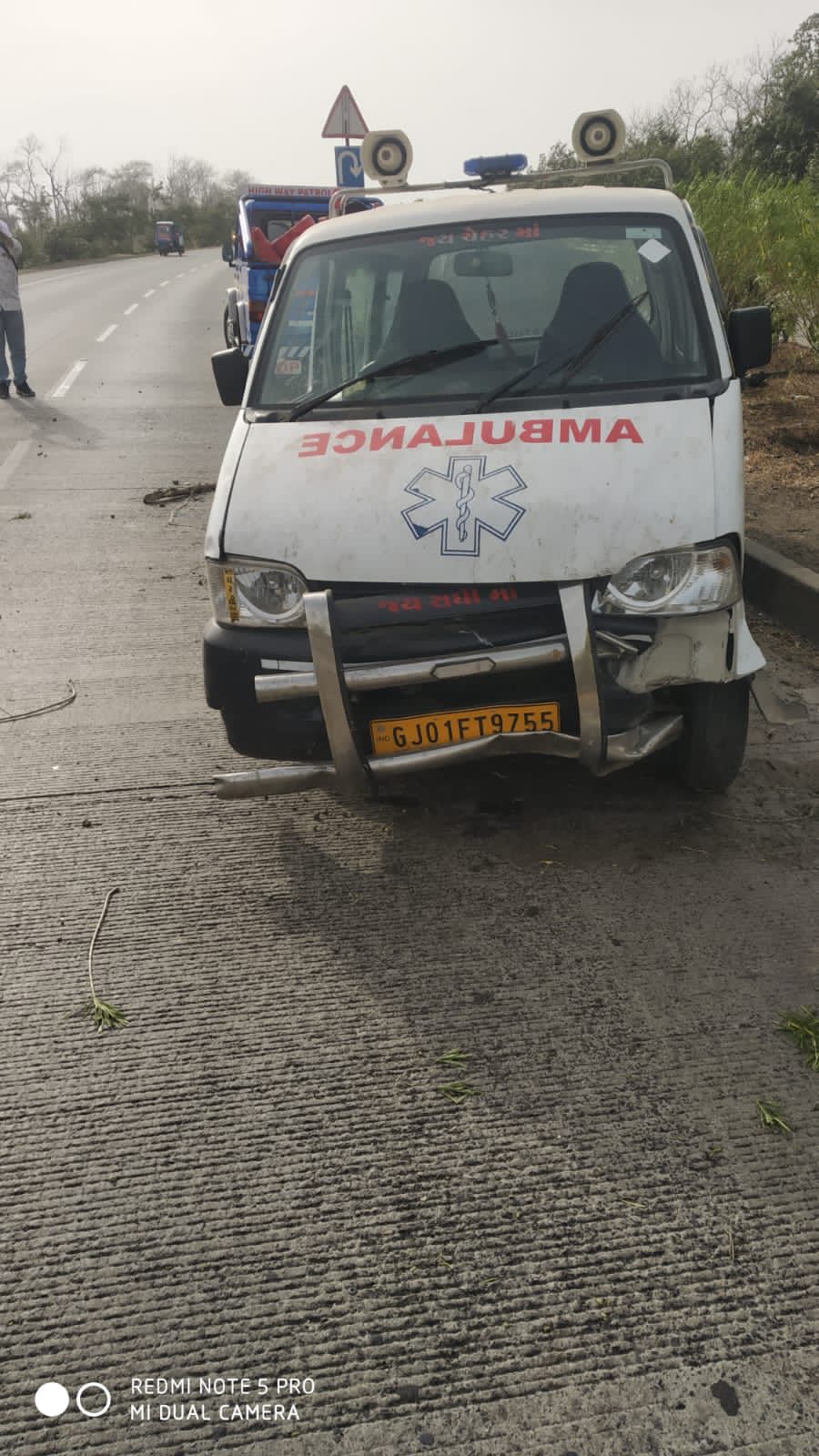 પ્રાપ્ત માહિતી અનુસાર અમદાવાદ જિલ્લાના અડાલજ થી મધ્યપ્રદેશના મેઘનગર ખાતે મૃતકના મૃતદેહને લઇ જઈ રહેલી Gj-01-FT-9755 નંબરની એમ્બ્યુલન્સનો દાહોદ જિલ્લાના લીમખેડા તાલુકાના કંબોઈ ગામે હાઇવે પર આગળનું ટાયર ફાટતા ચાલકે સ્ટિયરિંગ પરથી કાબૂ ગુમાવ્યો હતો અને એમ્બુલન્સ ડિવાઈડર સાથે સાથ અથડાતા અકસ્માત સર્જાયો હતો જેમાં એમ્બુલન્સ ગાડી ક્ષતિગ્રસ્ત થવા પામી હતી. જોકે આ બનાવમાં સદભાગ્યે કોઈ જાનહાની ન બનવા પામતાં લોકોએ રાહતનો શ્વાસ લીધો હતો.