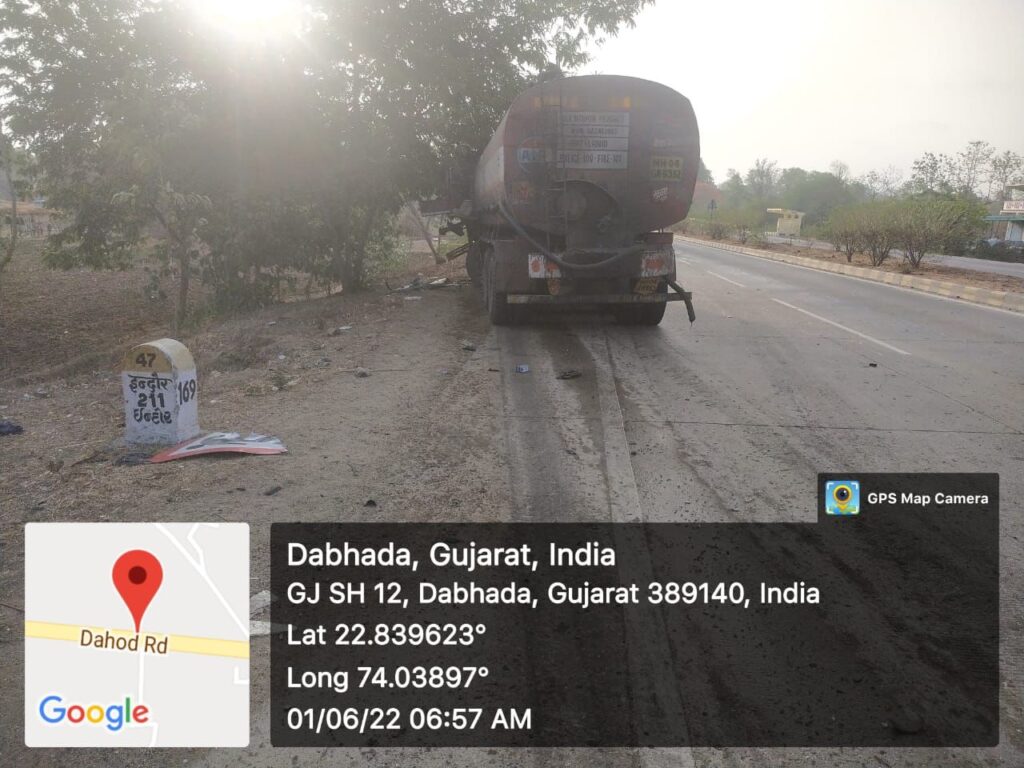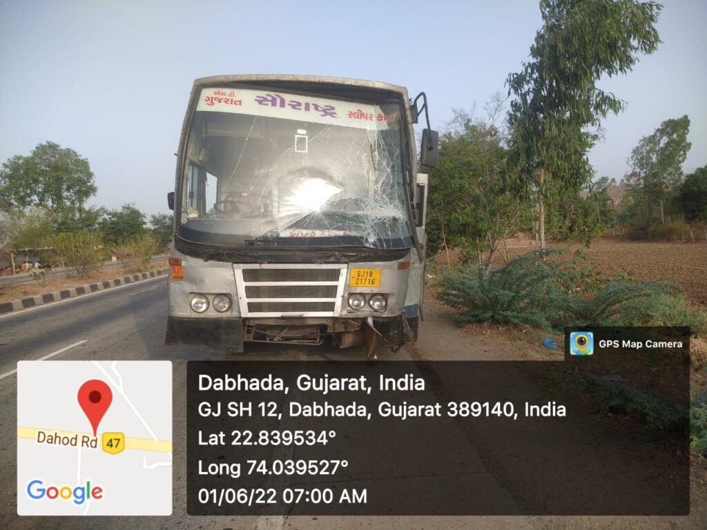 પ્રાપ્ત માહિતી અનુસાર દાહોદ જિલ્લાના લીમખેડા નજીક દાભડા ગામે આજરોજ સવારના સાત વાગ્યાના સુમારે Gj-18-Z-1617 નંબરની એસટી બસ ઇન્દોર અમદાવાદ નેશનલ હાઈવે પરથી પસાર થઇ રહી હતી. તે સમયે પાછળથી પુરઝડપે આવી રહેલા MH-08-GA-8352 નંબરના ટેન્કર ચાલકે એસટી બસને જોરભેર ટક્કર મારતા એસટી બસમાં મુસાફરી કરી રહેલ ૭થી ૧૦ મુસાફરો