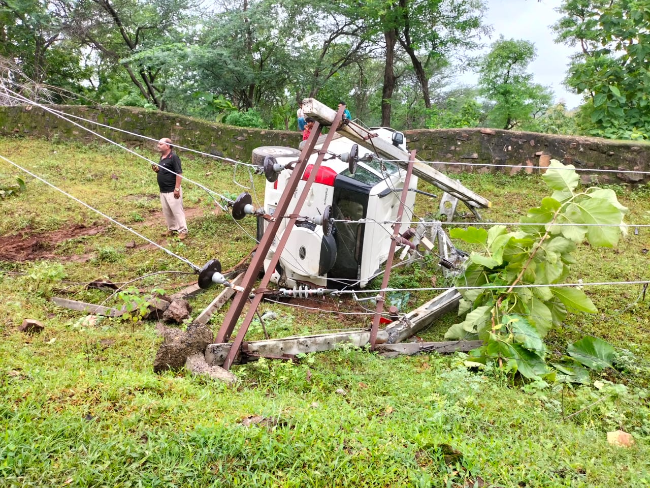 લીમખેડા તાલુકાના પાલ્લી ગામે વીજ થાંભલા સાથે ફોર વહીલ ગાડી અથડાઈ:ડ્રાઇવર અને અન્ય બે ઇસમનો આબાદ બચાવ