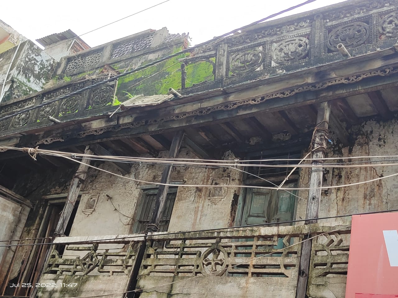 સંતરામપુર નગરમાં વરસાદના કારણે 60 વર્ષ જૂનું જર્જરી અને કદમ હાલતમાં થઈ ગયું મકાનનો ઉપરનો ભાગ વરસાદના કારણે નીચે પડ્યો હતો આ રીતે મકાનનો ભાગ નીચે પડવાથી જોરદાર ધડાકો થયો હતો આજુબાજુના લોકોને આવેલા હતા પરંતુ કોઈ જાનહાનિ થઈ નથી આ ઘટના સ્થળે નગરપાલિકા આવીને તાત્કાલિક મકાનની બંને બાજુ પતરા મારીને જવા માટેનો રસ્તો બંધ કરવામાં આવેલો હતો આ જગ્યાએ કુલ ચાર રસ્તાઓ પડતા હોય છે ચારેય બાજુથી માણસોની અવરજવર સૌથી વધારે રહેતી હોય છે અચાનક વરસાદના કારણે મકાન પડી જતા સ્થાનિક લોકોમાં ભય અને ડર નો માહોલ જોવા મળેલો હતો પાલિકાએ મકાન માલિકને તાત્કાલિક આખા મકાનને ઉતારી દેવા માટેની નોટિસ આપી હતી પરંતુ મકાન માલિક અને નીચે કરતા દુકાનના વેપારીઓ 60 વર્ષ કબજેદાર હોવાથી મકાન ખાલી કરવા માટે તૈયાર જ નથી મકાન માલિકે અગાઉ પણ તમામ કબજેદારને જણાવેલું કે આ મકાન જર્જરી હાલતમાં છે અને મકાન માલિકે પણ નોટિસ આપેલી પરંતુ ૬૦ વર્ષથી પાંચ વેપારી નીચે દુકાન ચલાવનાર કબજો જમાવીને બેઠા છે પરંતુ ખાલી કરવા તૈયાર નથી મહિને ₹35 લેખે ભાડા પેટે આ દુકાનો આપેલી હતી મકાન માલિક છેલ્લા ઘણા સમયથી દુકાનદારો પાસેથી મની ઓર્ડર થી ભાડું મોકલતા તે પણ પરત કરેલું હતું અને સ્વીકારેલું હતું પણ સૌથી મોટો પ્રશ્ન ઉભો થયેલો કે મકાન માલિક અને કબજેદાર વચ્ચે પ્રકરણના કારણે આવા રોડ ઉપર જૂના મકાનની હોવાથી મોટી દુર્ઘટના ઘટના ભયભીતી અને જોખમી કારક બની રહ્યું છે આવા જોખમી કારક મકાનના કારણે ગમે ત્યારે પણ મોટી ઘટના બની શકે છે તાત્કાલિક નગરપાલિકા મકાનો ઉતારી લેવા માટે મકાન માલિકને નોટિસ આપી હતી નગરપાલિકા જણાવેલું કે મકાનની આજુબાજુ થી કોઈએ પસાર થવું નહીં જો પસાર થશો જાનહાની સાથે તો અમારી કોઈ જવાબદારી રહેશે નહીં નગરપાલિકા મકાનની બાજુમાં પતરા મારીને રસ્તો બંધ કરી દીધેલો હતો.