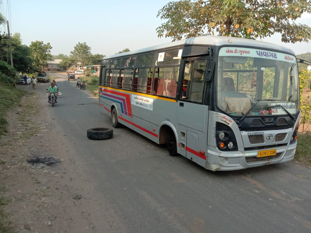 જ્યારે બસના ટાયર નીકળી ને અંદાજે ૫ ફૂટ જેટલુ દૂર ઊભેલી મોટરસાયકલને અથડાતા મોટરસાયકલ પડતાં તેને નુકસાન થવા પામ્યું હતું આતો મોટરસાયકલ ઊભેલી હતી જો મોટરસાયકલ રનીંગમાં હોતી તો મોટી દુર્ઘટના સર્જાઈ હોત આતો મોટરસાયકલ નુકસાન થયું જો ખાલી સાઈડ નું ટાયર નીકળી ગયું હોત તો બસ પલટી મારી જવાનો ભય રહેતો અને તેમાં મુસાફરી કરી રહેલા ૩૦થી ૪૦ મુસાફરોનો જીવ નું શું હતું