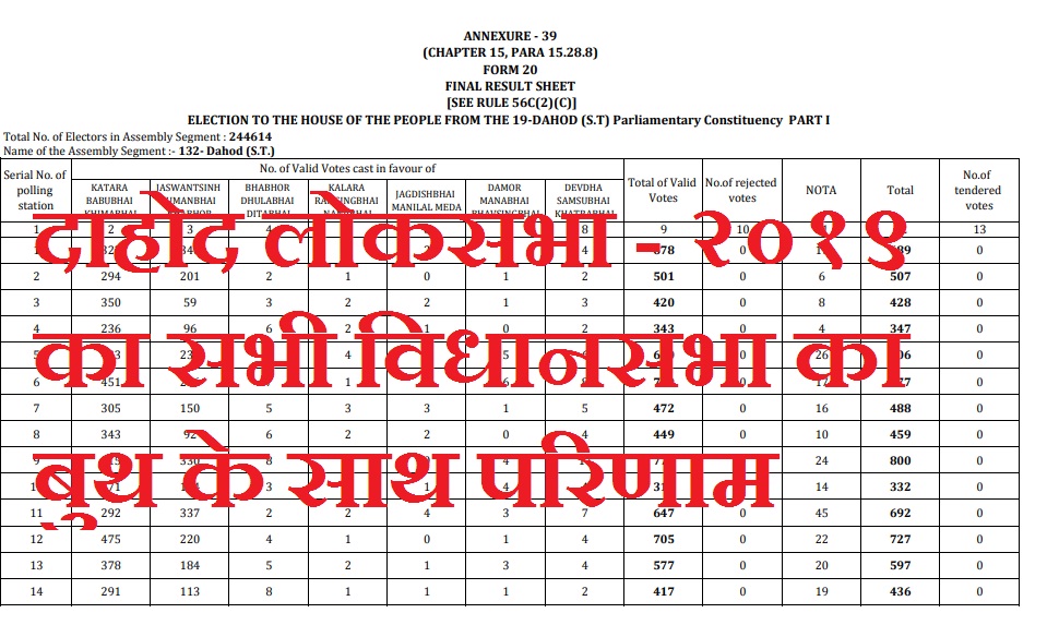 दाहोद लोकसभा - २०१९ का सभी विधानसभा का बुथ के साथ परिणाम…