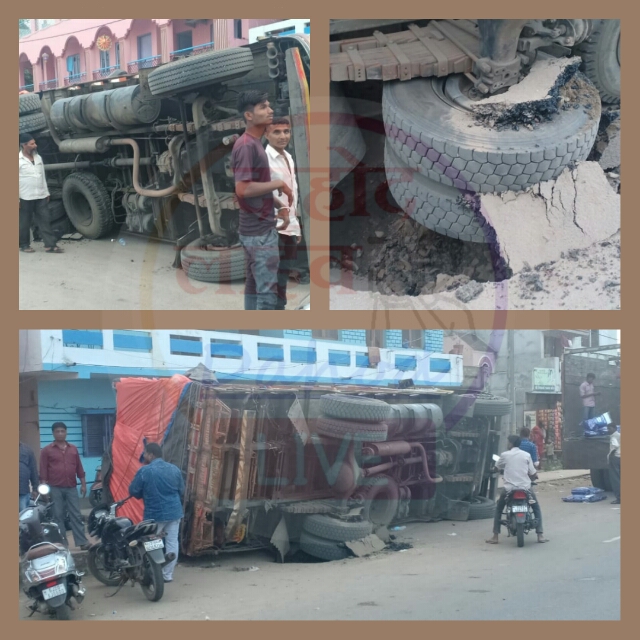 દાહોદમાં ગોધરા રોડ પાસે મોટો ભુવો પડતા ટ્રક પલટી