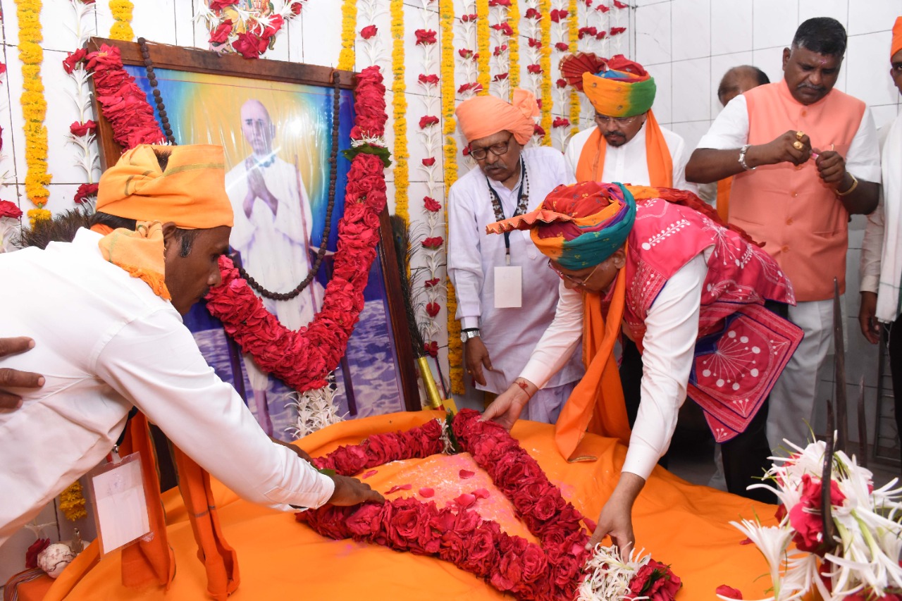 મુખ્યમંત્રી શ્રી ભૂપેન્દ્રભાઇ પટેલ આજે વિશ્વ આદિવાસી દિવસની રાજ્યકક્ષાની ઉજવણી અંતર્ગત આદિવાસીઓના મસીહા અને સ્વાતંત્ર્ય સંગ્રામના વીર નાયક શ્રી ગોવિંદગુરૂની સમાધિ સ્થળ કંબોઈધામ ખાતે ભાવપૂર્વક દર્શન-અર્ચન કર્યા હતા.